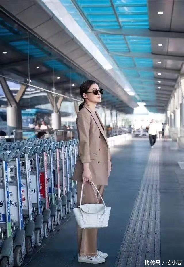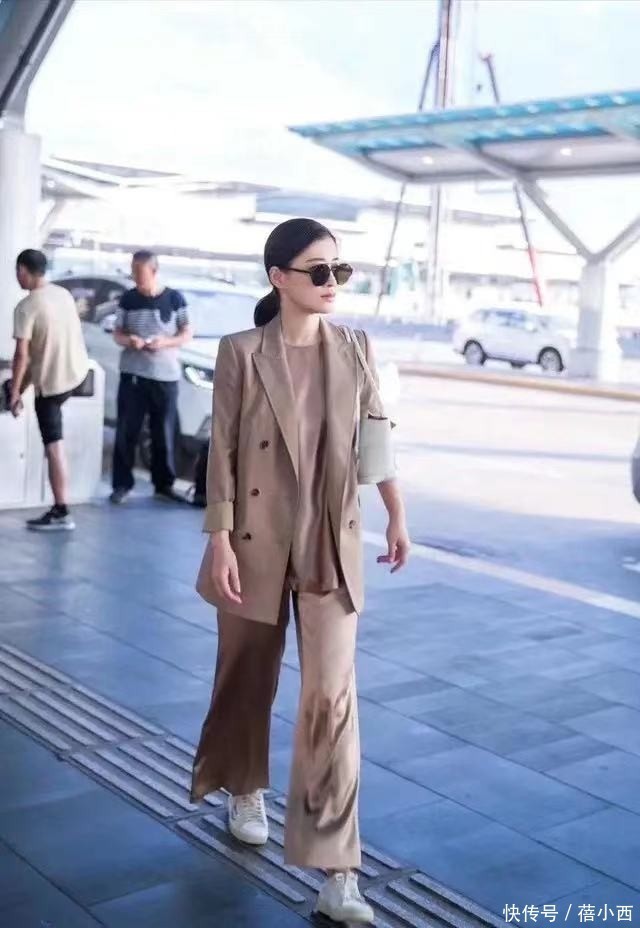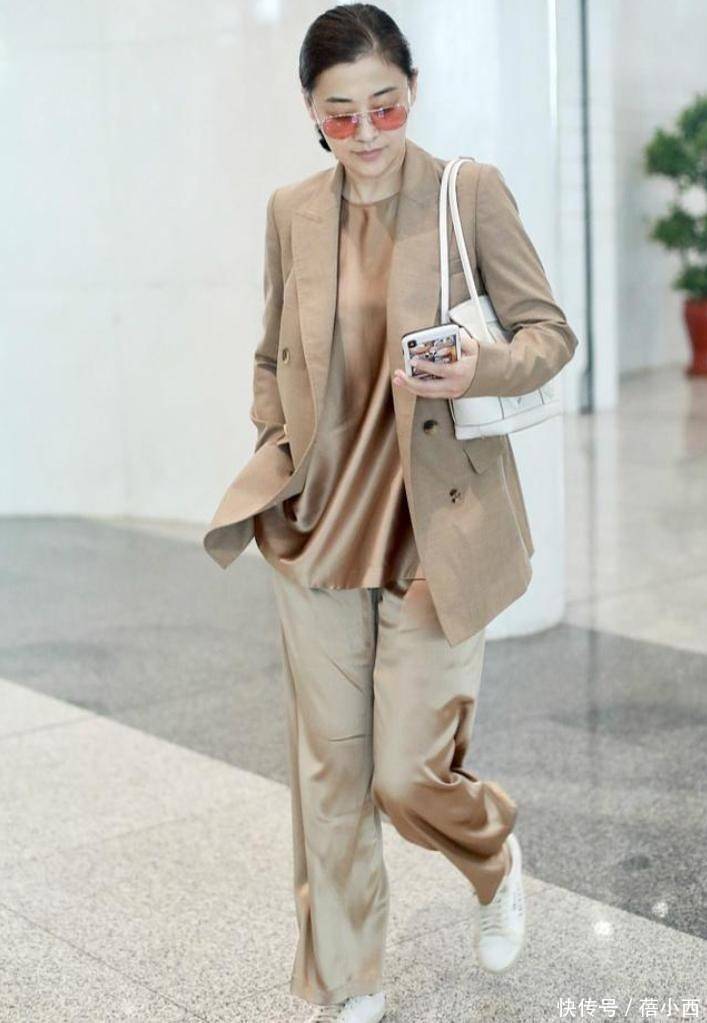 梅婷走机场带火了美拉德新穿法:西装+阔腿裤+小白鞋,时髦又减龄